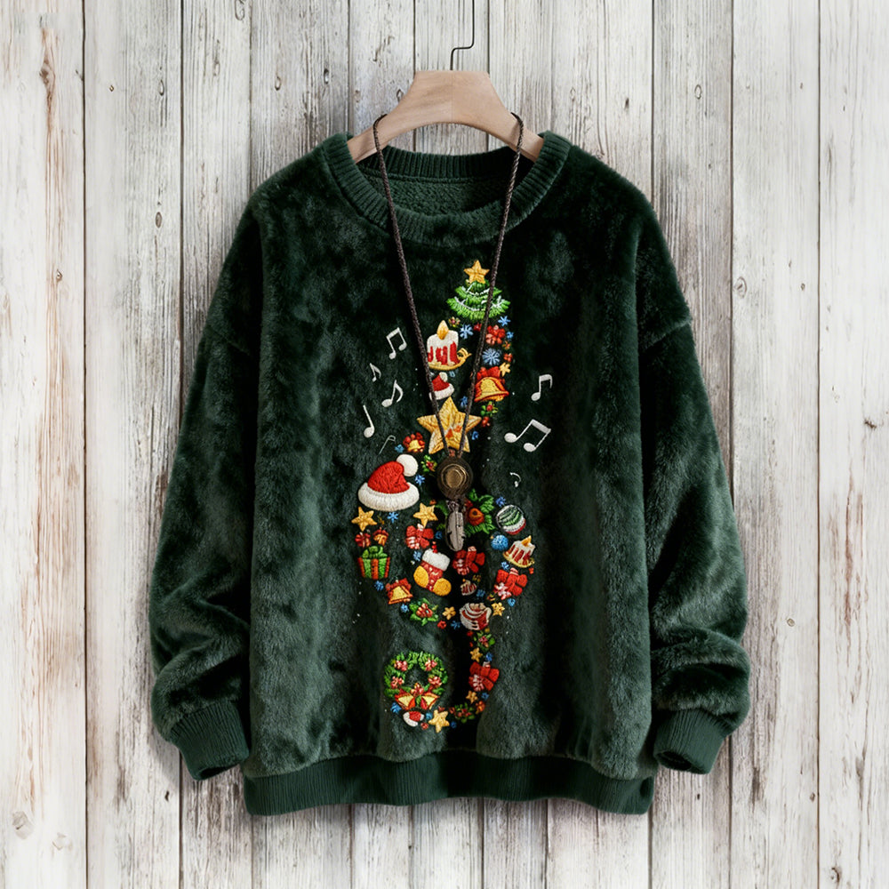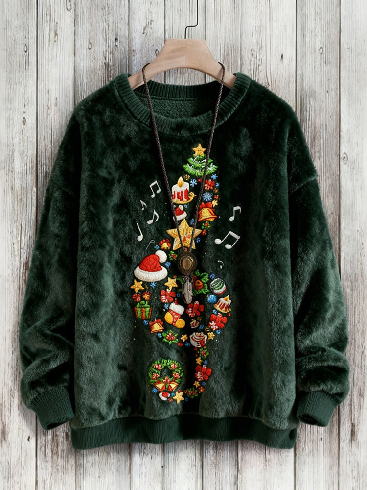 Wygodna Polarowa Bluza z Haftem w Motywie Muzycznym i Świąteczną Nutą